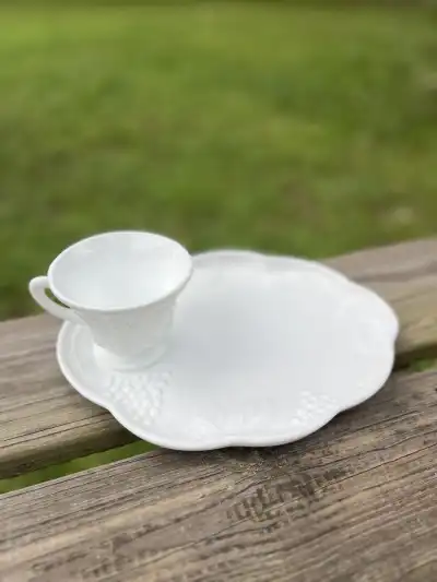 We carry an exquisite collection that includes milk glass, clear glass and porcelain.with different colors from solids to toiles, vintage and classic whites.